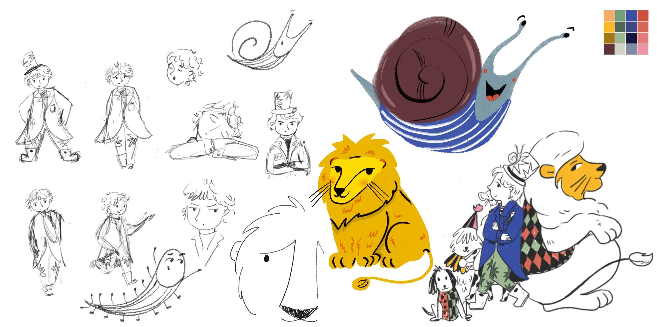This project was created as part of the Inkygoodness Make Your Mark (MYM) Bootcamp 2025, following a brief set by Plum Agency. The task was to design a book cover and a double-page spread for Eric the Liontamer by Rachel Elliot. The aim was to create playful scenes that subtly hinted at the lion’s presence before its reveal later in the story. I drew inspiration from vibrant circus colors and enjoyed experimenting with character design, hiding small details of the lion throughout the illustrations to build anticipation for the big reveal.